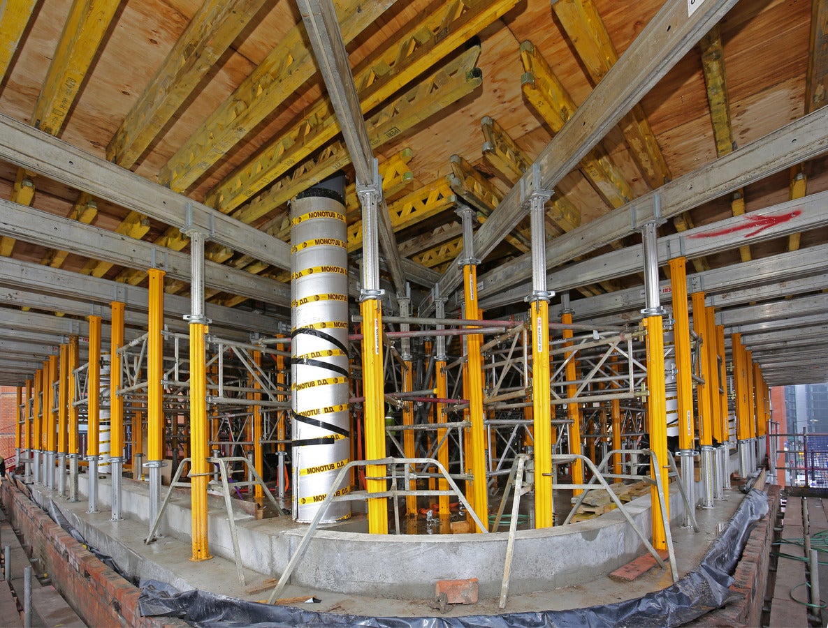 Utilisation optimisée des matériauxgrâce à une combinaison de poutres de coffrage GT 24 et VT 20K, ainsi qu'à une disposition des poutres librement sélectionnable.